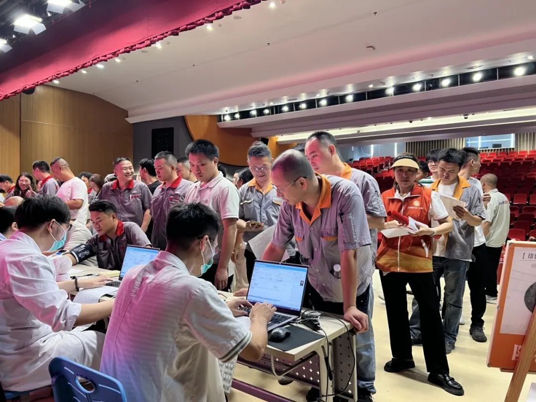 在工作人員的引導下,員工們有序列隊進行登記、體檢、獻血。